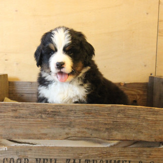 En als klap op de vuurpijl kwam er ook nog een vreemde dame op visite, die ging ons helemaal bekijken en ze heeft een chipje in onze nek geschoten. Ook heeft ze bij ons allemaal een wang swap afgenomen, nee geen coronatest hoor! Dat was voor het DNA, zo weten onze baasjes zeker dat Joos en Zwitser onze papa en mama zijn. Deze mevrouw was van de Raad van Beheer en deed de nestcontrole en wat denk je… ze vond ons allemaal hele mooie hondjes en we zijn allemaal goedgekeurd voor het stamboom certificaat! Dit wordt afgegeven na de DNA controle.